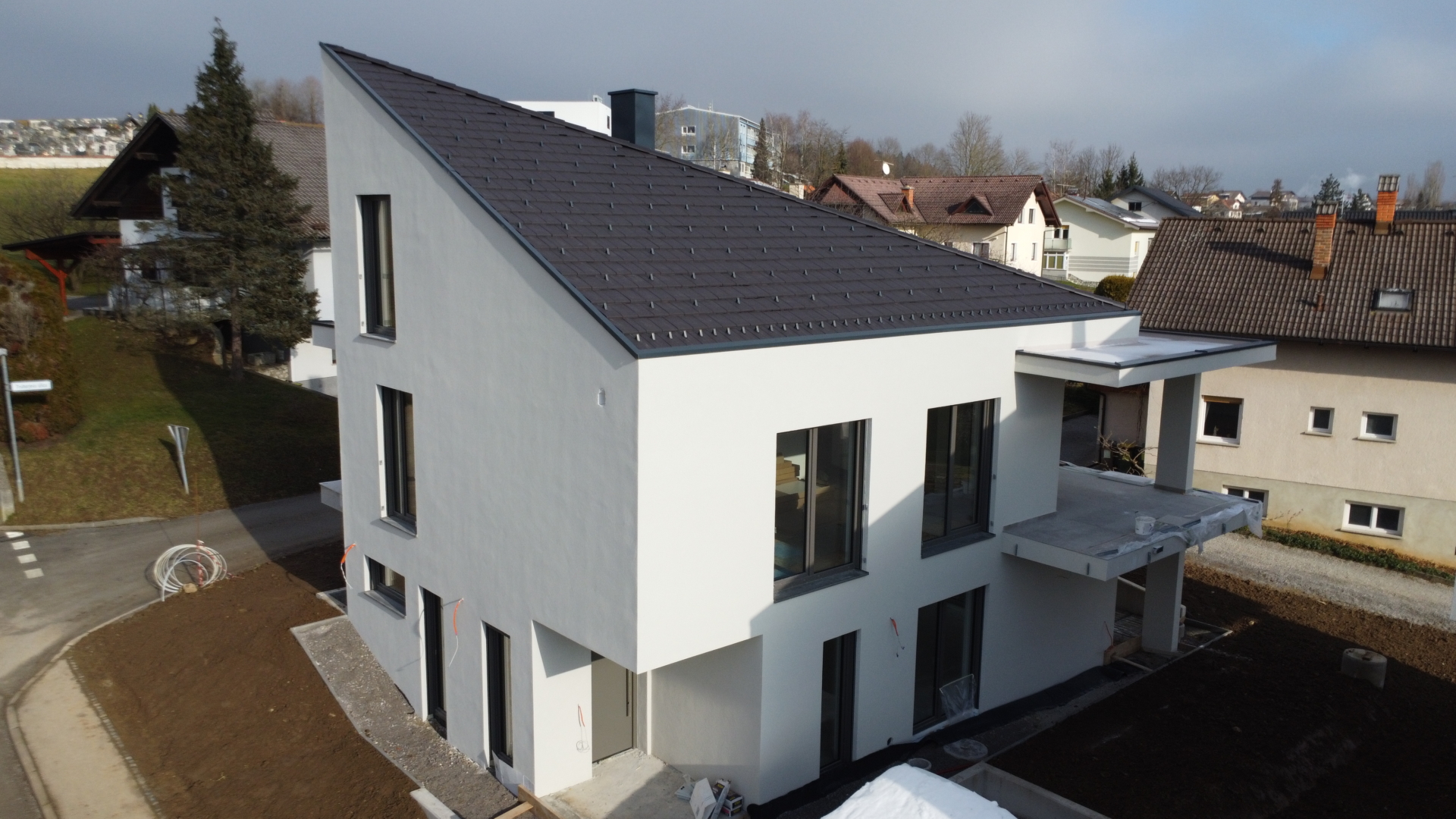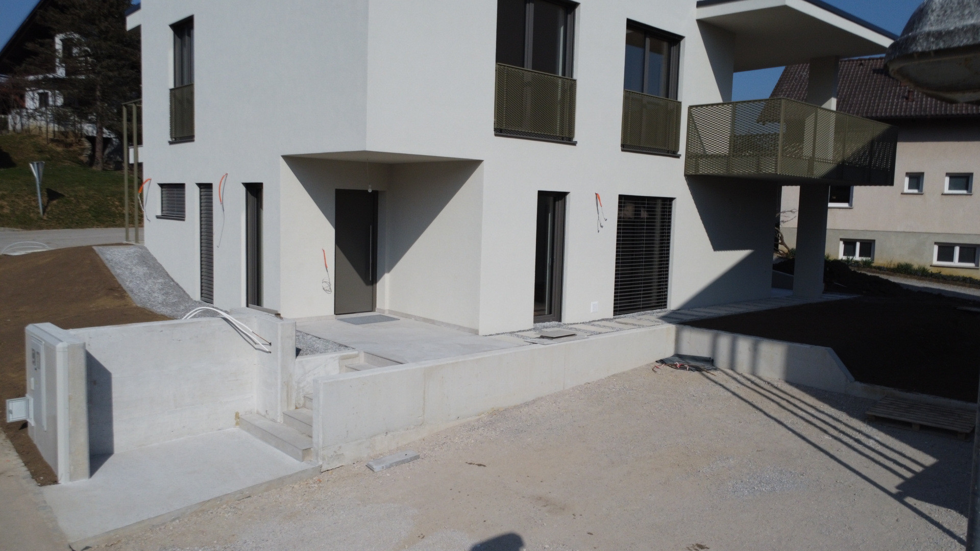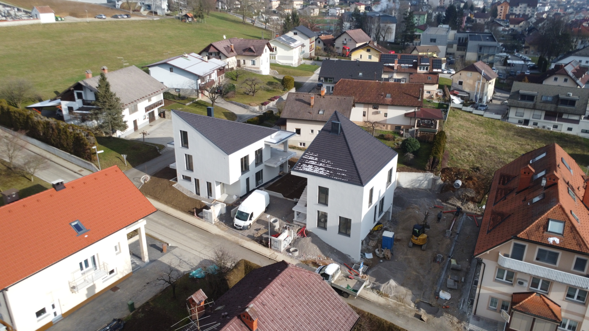 - Obodne stene so toplotno izolirane (20 cm) ter izvedene kot kontaktna fasada (zaključni omet).